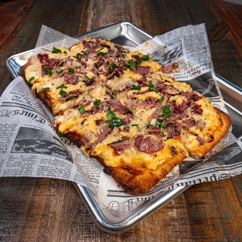 1000 Island Base, Cheese, Kraut, Corned Beef, Scallions